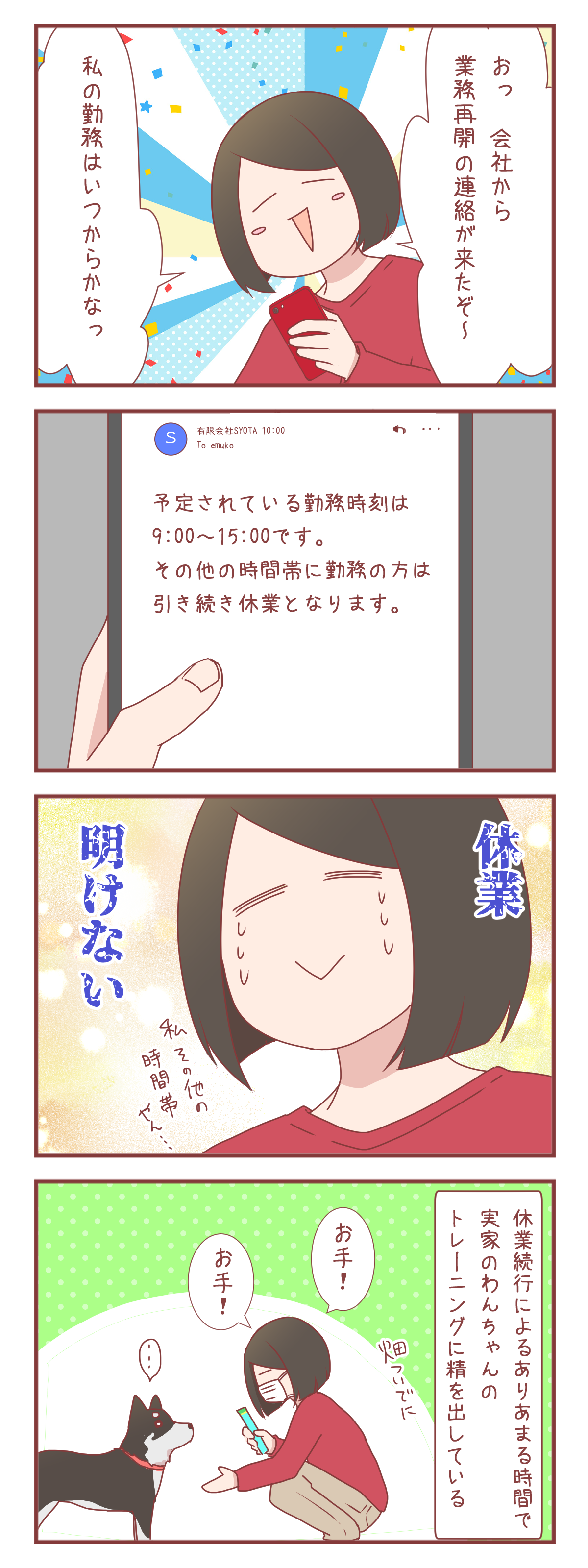 兵庫県もついに緊急事態宣言、解除となりました。パート先の会社からも「業務再開のお知らせ」が来ましたよ! 長かった休業生活にも、ついに終わりが来るのか…!?