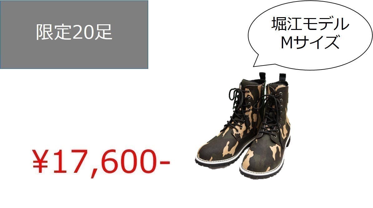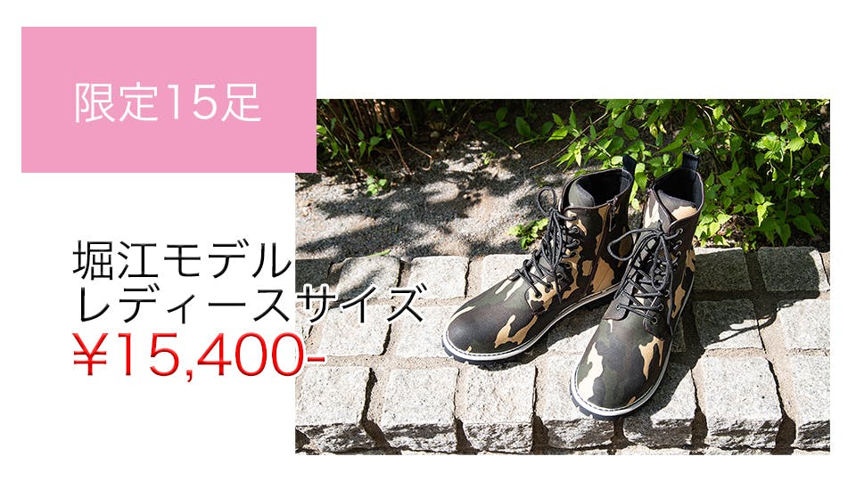 堀江貴文の愛用していたブーツのモデルをイメージし、復刻させたのがこのモデルです。柄として作為的になりすぎないお洒落な迷彩デザインで、シンプルな服のアクセントにはもってこいのブーツになっています。