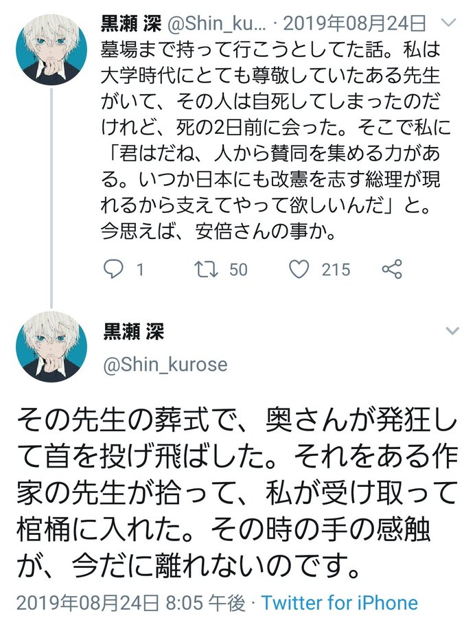 「黒瀬深」さんというネットで有名なアカウント、