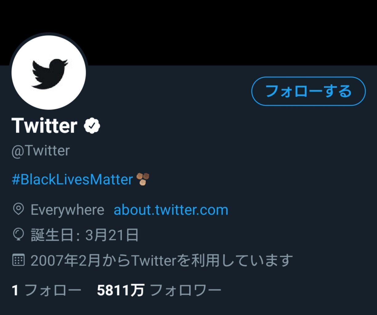 https://twitter.com/Twitter?s=09より(2020年6月6日現在)