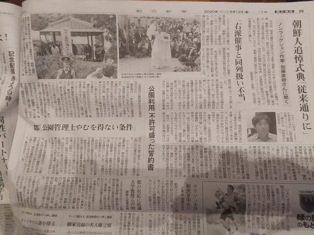 どこのメディアも書かないそよ風の慰霊祭を朝日新聞が取り上げました。