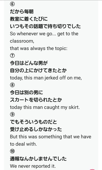 一人のクラスメイトが被害にあってたんじゃなくて、クラス50人弱いればその中のはなしで、それに近いほど毎朝被害に遭っていた女の子がクラスの中にいたってことでしょ?