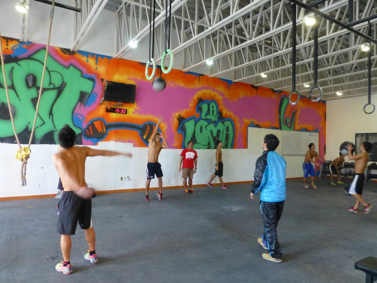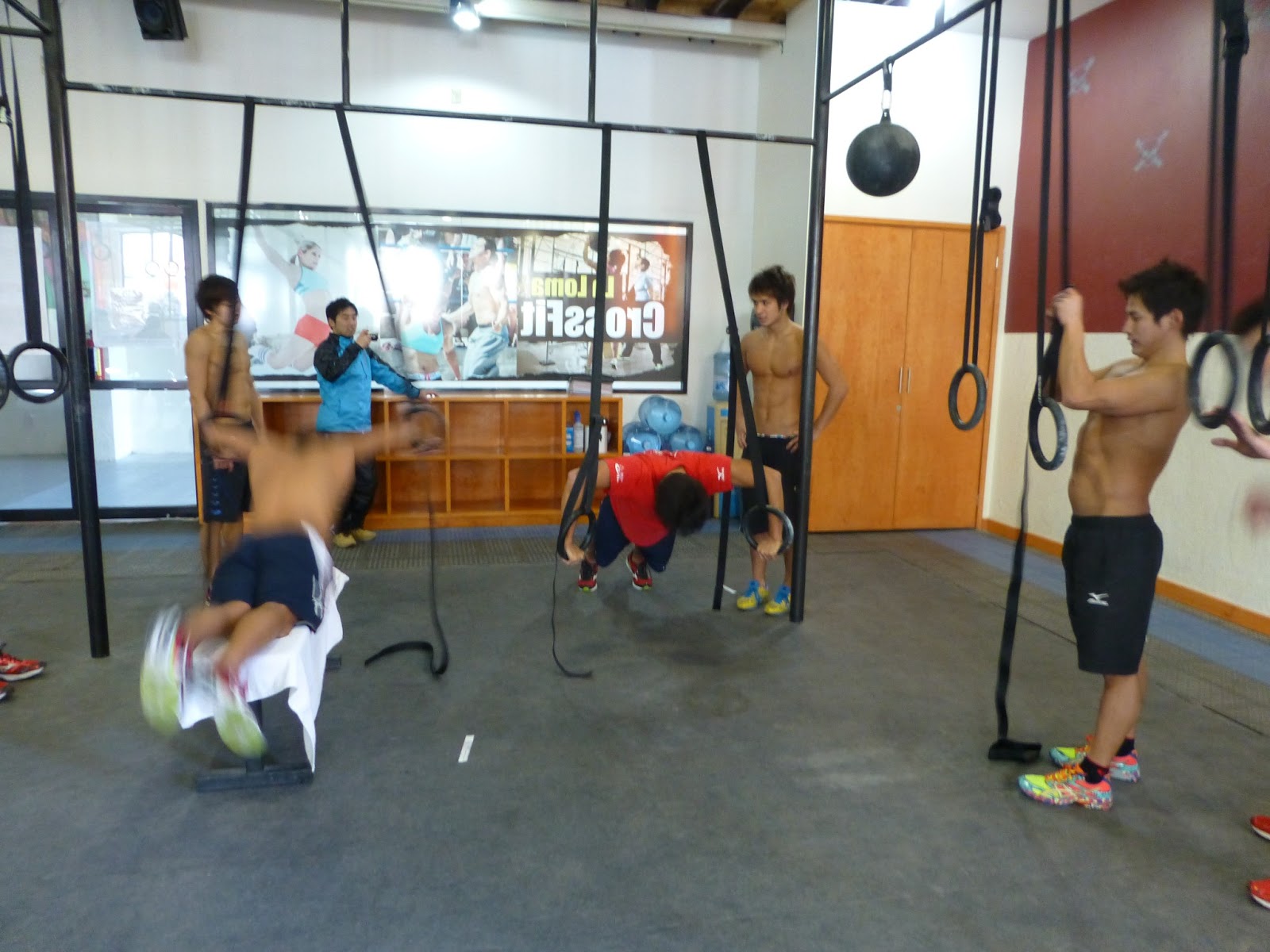 このクロスフィットルームは、僕にとってはとっても使い勝手がよく、これまで遠征時の選手の悩みの種(荷物が重くなる)であったリングが10セット以上吊さげてあるほか、メディシンボールやジャンプ台も抱負にあるため、僕の通常実施しているプログラムは問題無く実行できるし、「+α」のアイデアを実現出来る、「刺激的な」環境だといえます。