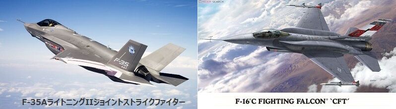 隊列を先導するのは、アメリカ空軍のF-16CMと航空自衛隊のF-35A。2機ずつ並んだその後列にアメリカ海軍のEA-18Gが2機並び、その後にまた航空自衛隊のF-35Aとアメリカ空軍のF-16CMが続きます。