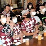 ノエビアスタジアム神戸ではヴィッセル神戸が広島と対戦。神戸市中央区北長狭通2の「スポルテリア」には、午後7時半のキックオフを前に、ヴィッセルのサポーターらが多数来店した。店内のカウンターにはパーテーションが設けられ、サポーターもマスク越しに声援を送った。