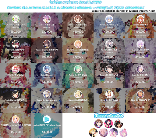 Talents featured have reached a subscriber milestone (multiple of 10,000) within the week.