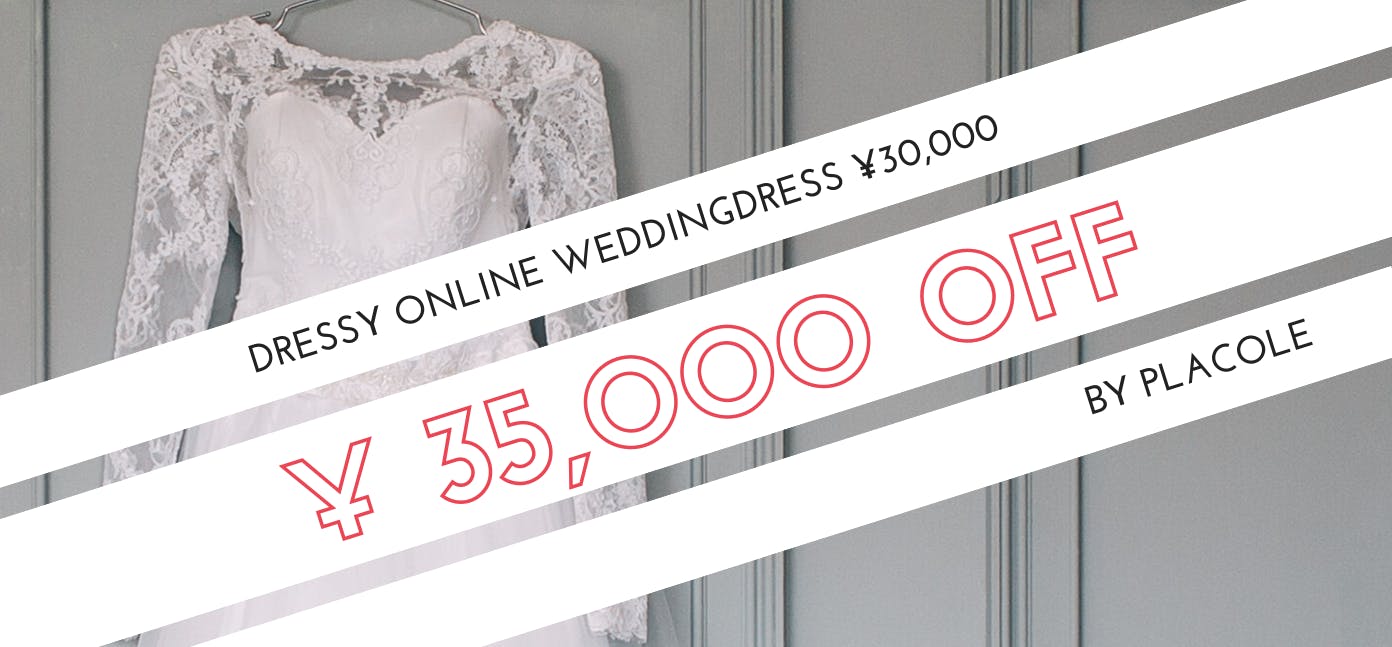 30,000円ご支援いただくと、DressyOnlineで販売するドレスの35,000円OFFクーポンの発行とプラコレよりお礼のメッセージをお送りさせていただきます。