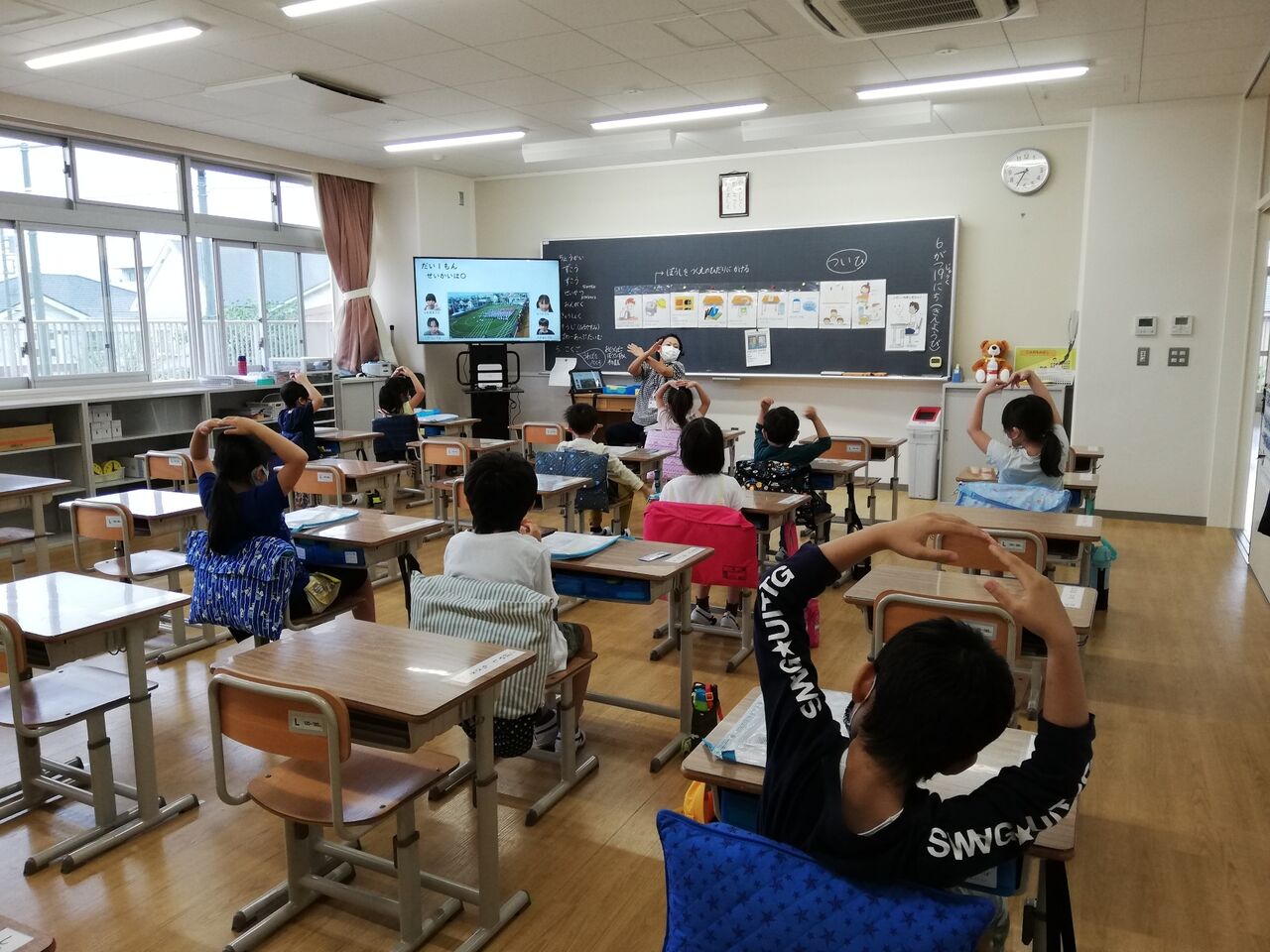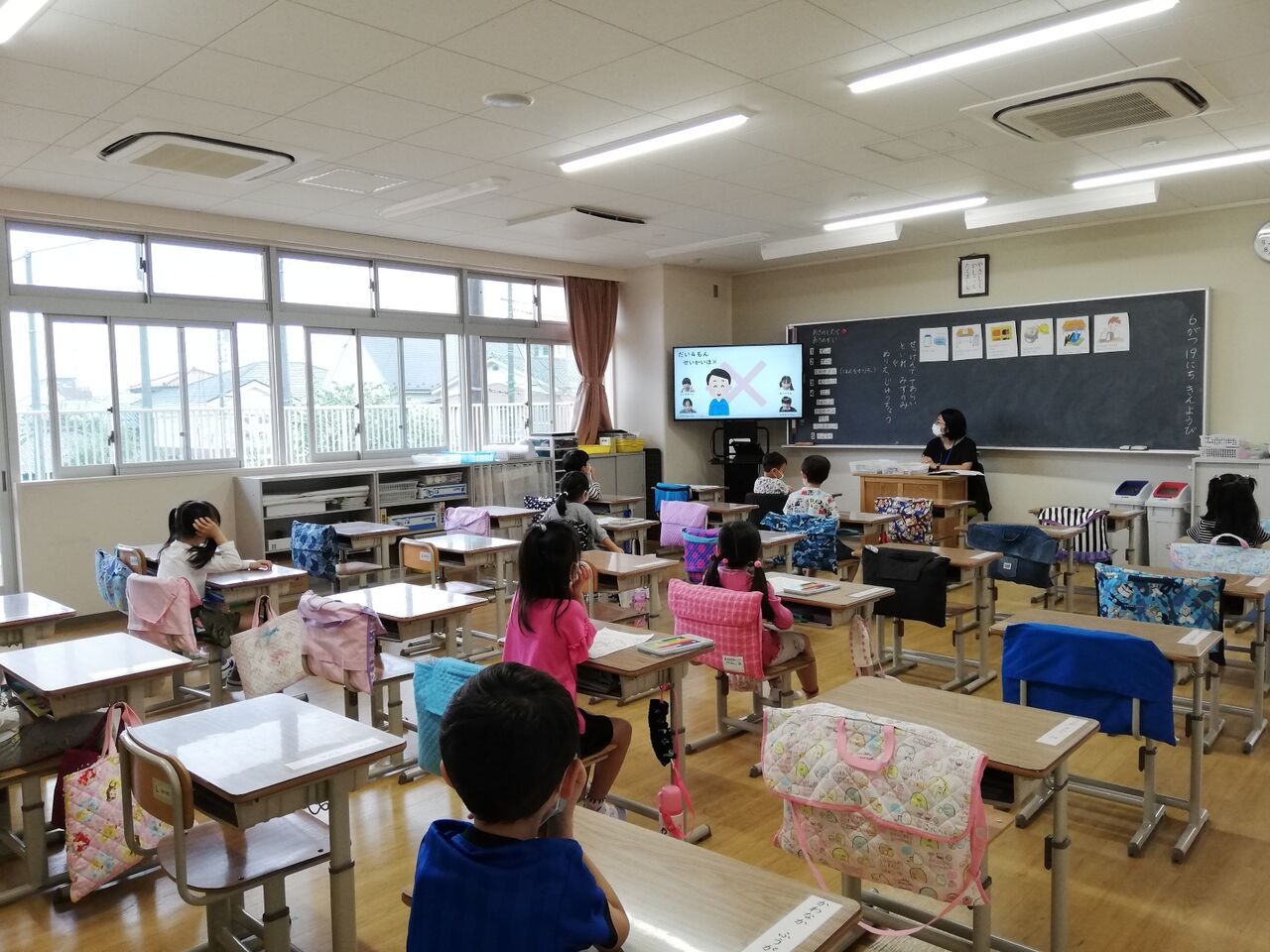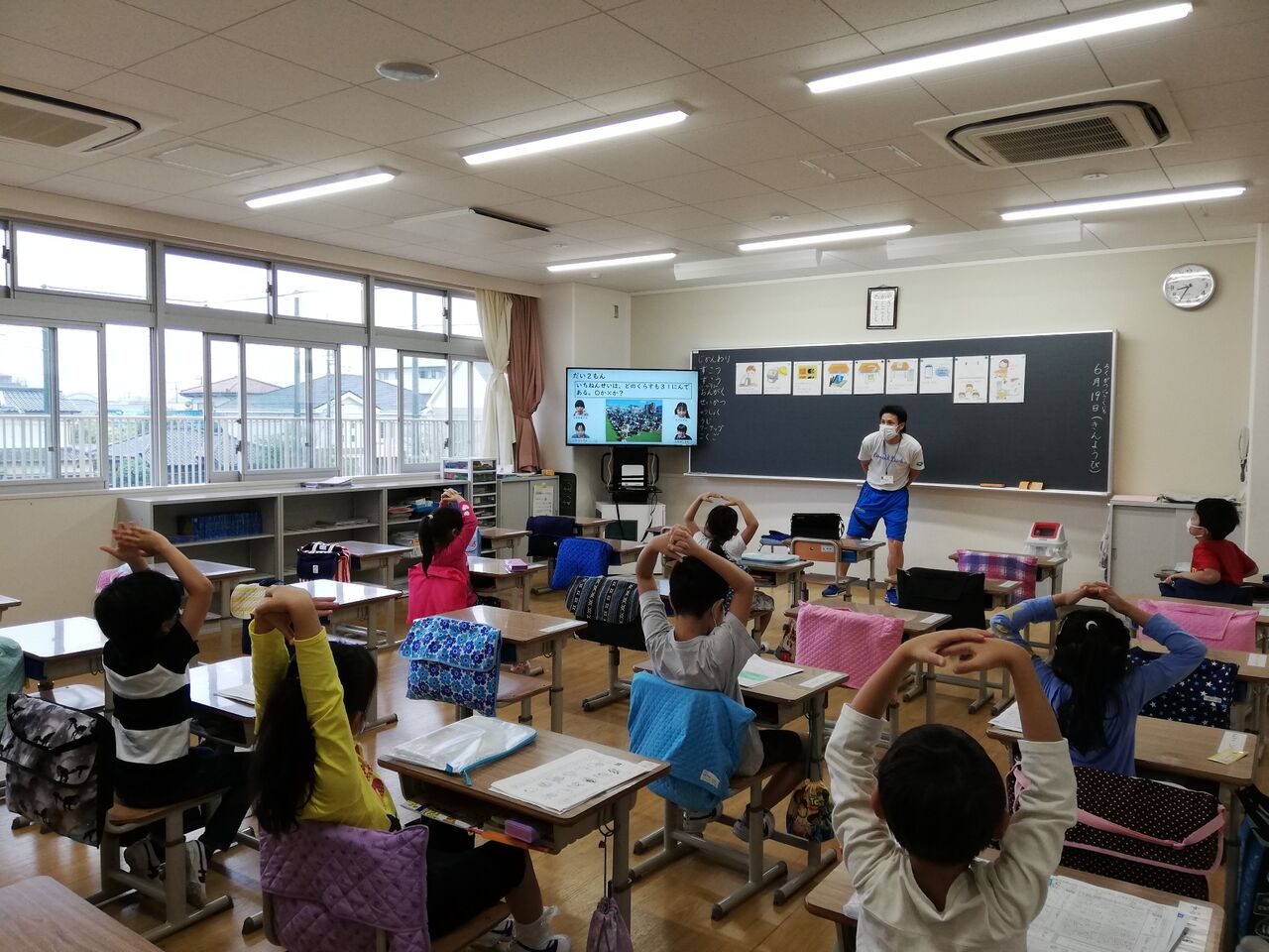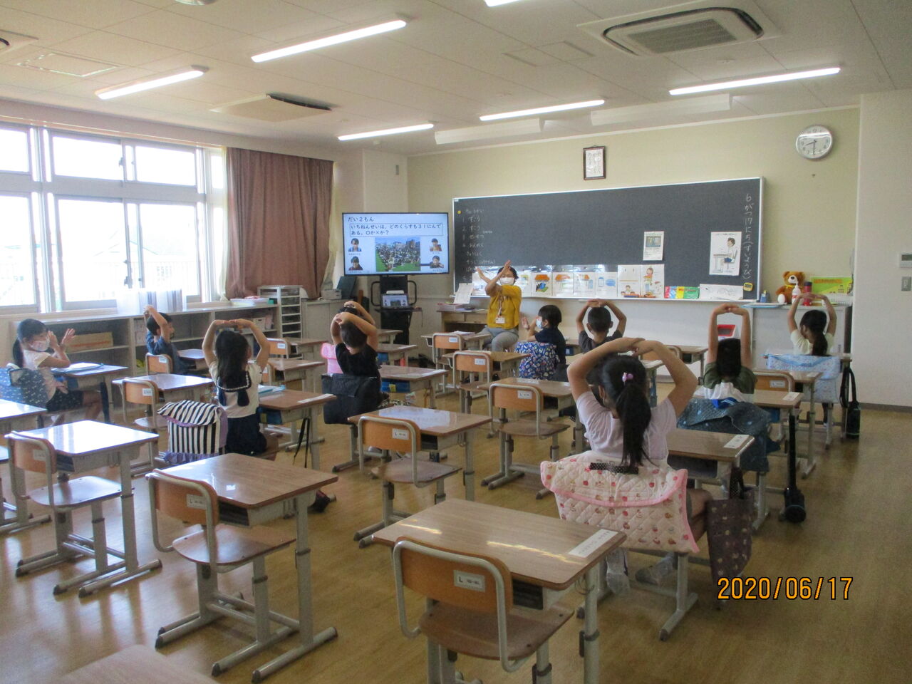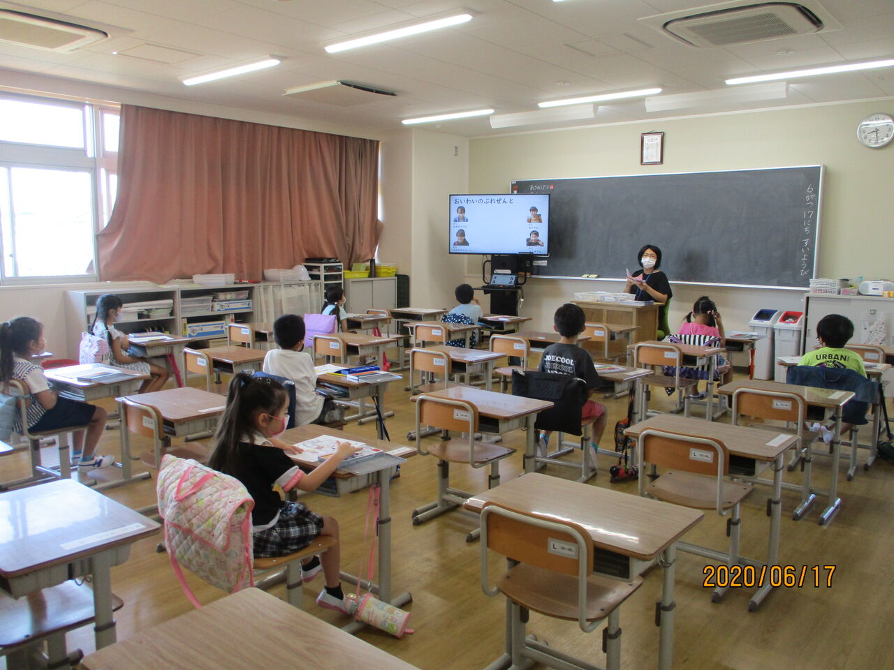 2020年07月02日 1年生を迎える会 五回目の分散登校の時に、Zoomを使ったオンラインで、一年生を迎える会を行いました。6年生は、外で、司会などをして進行をつとめました。クイズをしたり、全校児童が心を寄せて作ったプレゼントを贈ったりしました。全校が集まれませんでしたが、お兄さんお姉さんのお祝いの気持ちは、きっと1年生に届いたことでしょう。