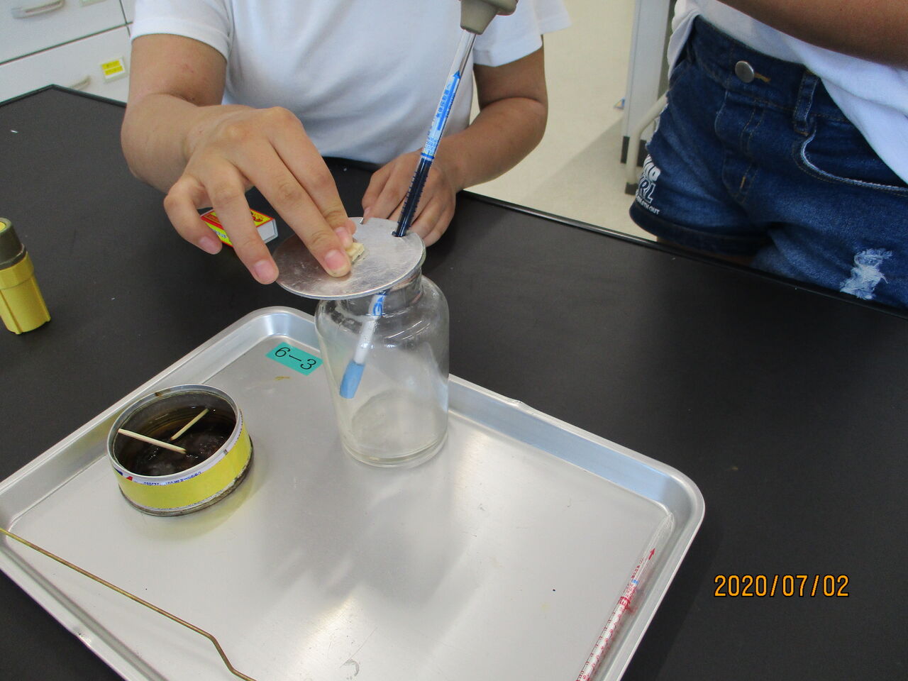 2020年07月06日 6年生 専科の授業の様子(図工・理科) <図工科 想像のつばさを広げて> 自分が想像する世界を画用紙に表現しています。様々な世界が広がっていて、完成が楽しみです!<理科 ものの燃え方> ものが燃える前と後では酸素と二酸化炭素の割合がどのように変わるかを調べています。図などを活用して予想を立て、実験に臨んでいます。
