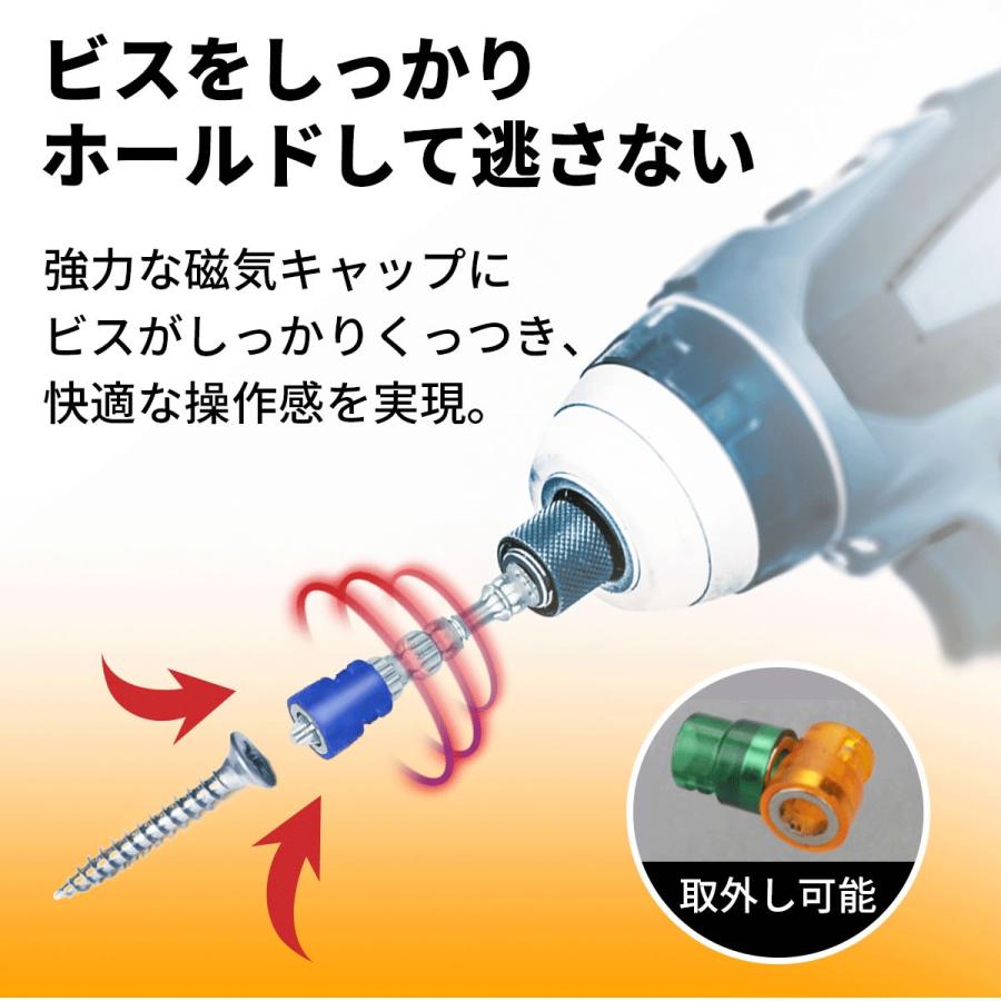 強力なマグネットキャップで、ビスをしっかりとホールド!