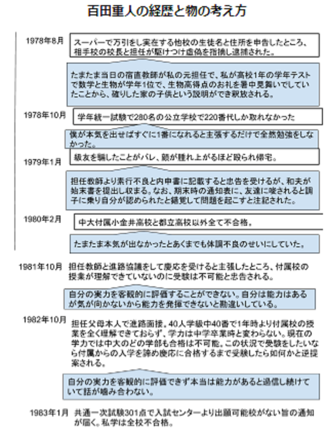 和夫の東邦生命での上司同僚部下に対する聞き取り調査の結果で、有効回答から百田重人 が裁判所に提出した書類が本人若しくは弁護士により偽造されたものであることは明白 であるにも関わらず、代理人弁護士小町屋綾の強硬な主張により裁判所は事実関係を確認 することもなく一方的に相手方である百田正道を批難した。申立人百田重人若しくは