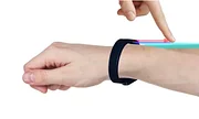 Touching your arm with your finger will interrupt one of the sensors and return the instruction back to the processor bracelet..