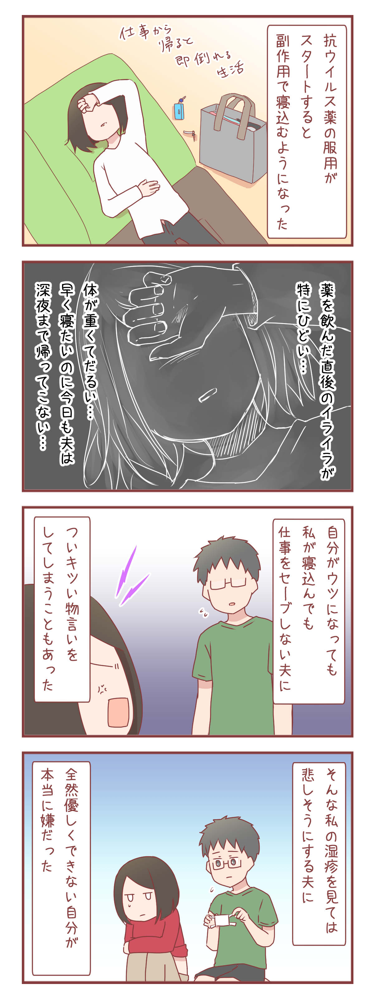 勤め先でのショッキングな出来事により、心のバランスが崩れかけてしまった夫。夫を支える立場の私もストレスから帯状疱疹を発症。服薬治療に入ったのですが…