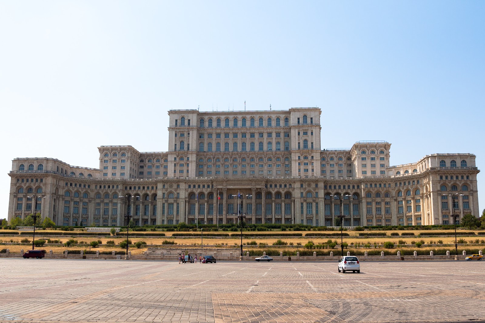 チャウシェスク宮殿前広場に着くと、建物の巨大さにまず圧倒される。