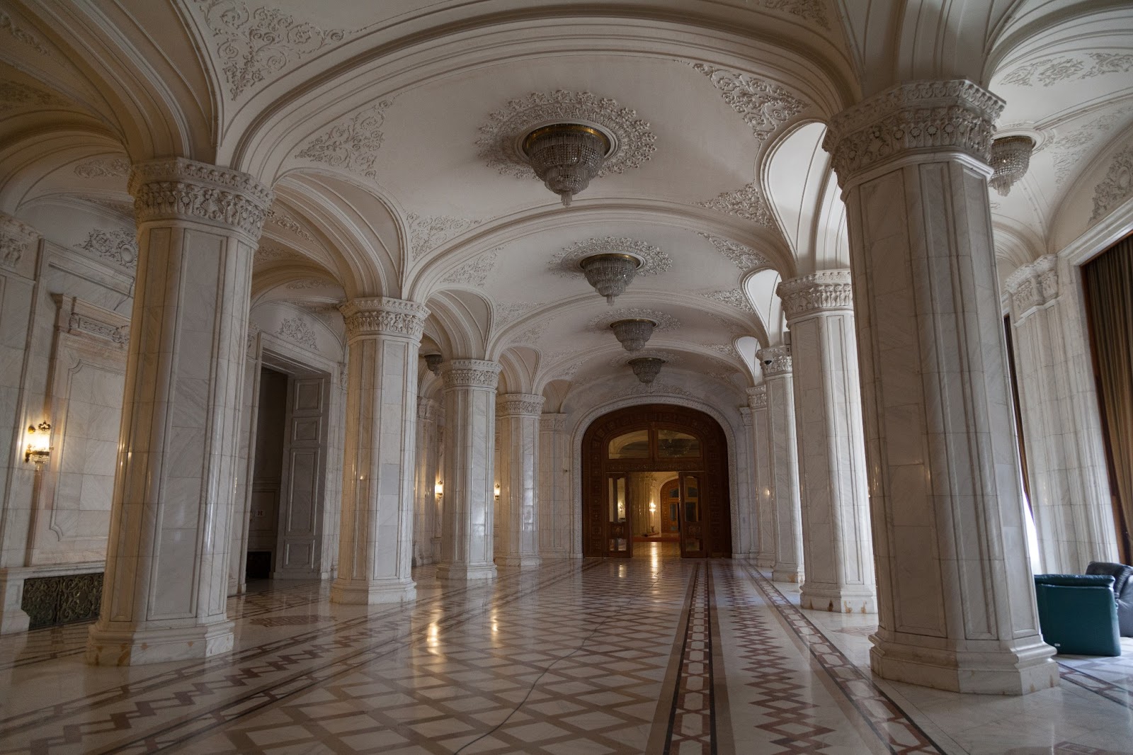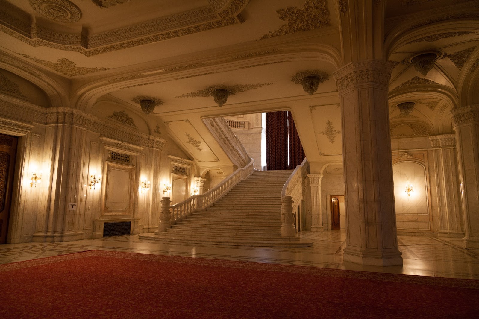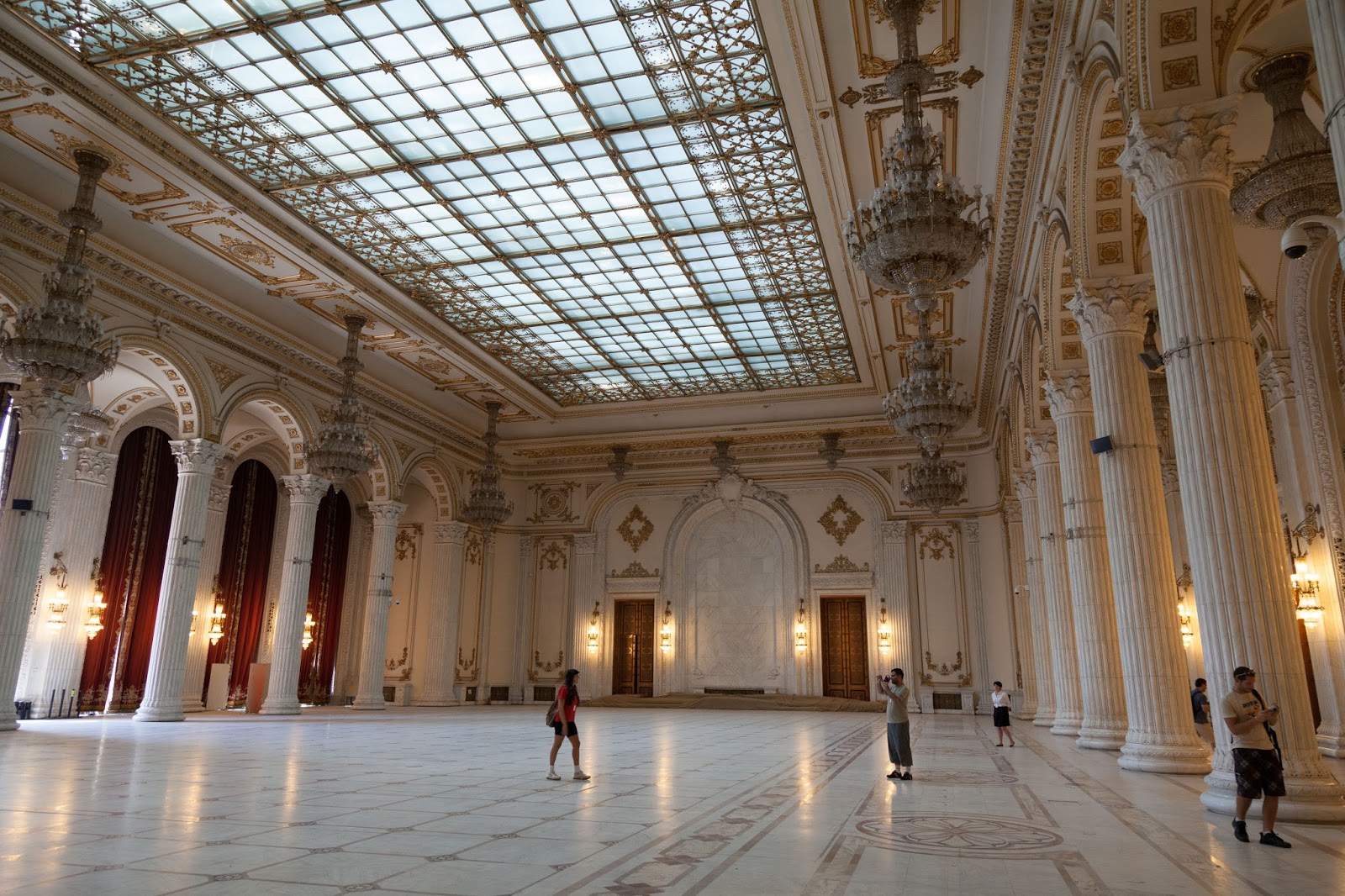 革命前は「国民の館」と呼ばれたこの建物は、国民が貧困と飢餓にあえぐ1980年代にチャウシェスクが贅を尽くして建設した。典型的な独裁者の自己顕示欲充足のための建物で、ある意味ここまで趣旨がはっきりしている例も珍しい。