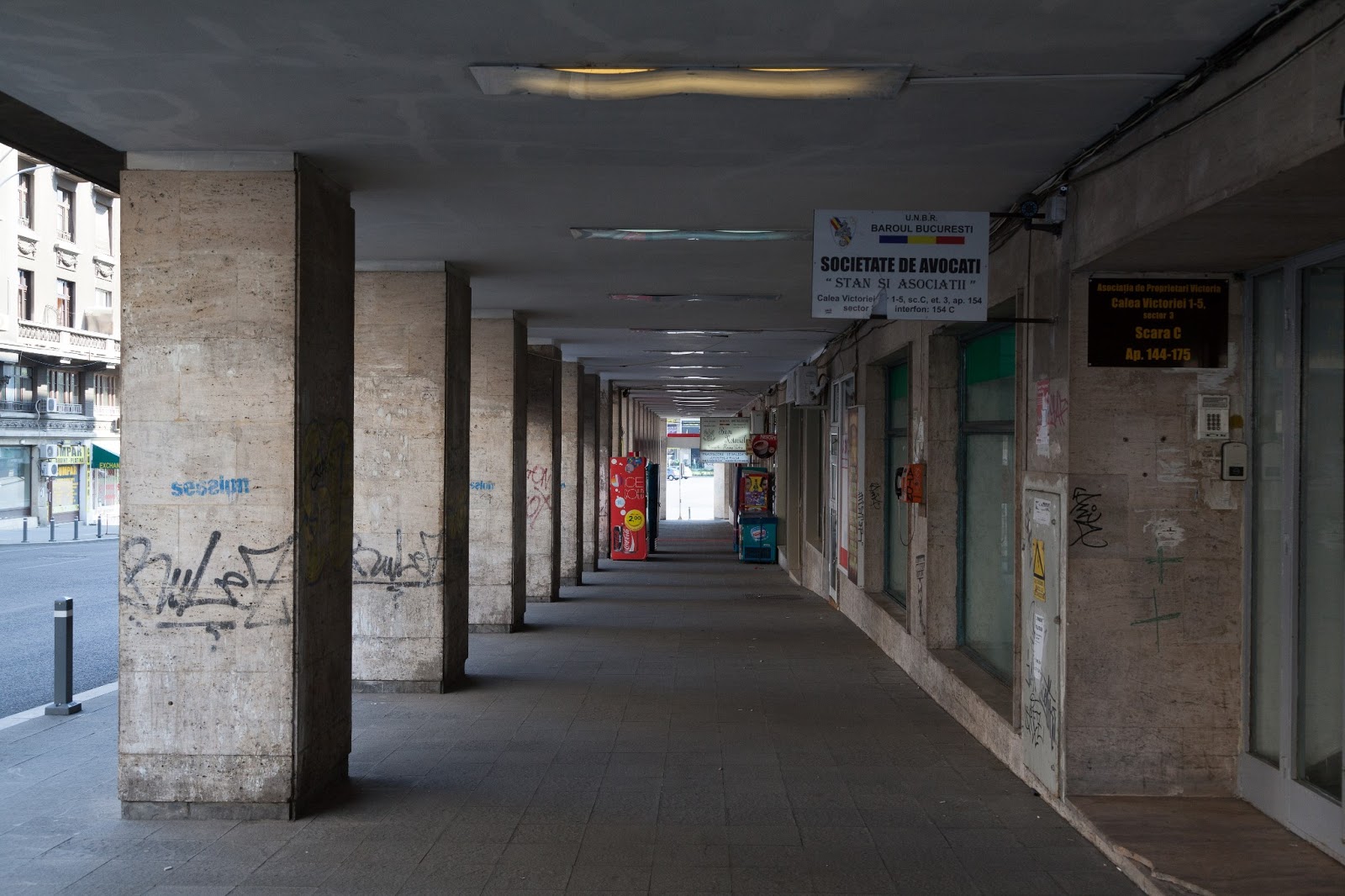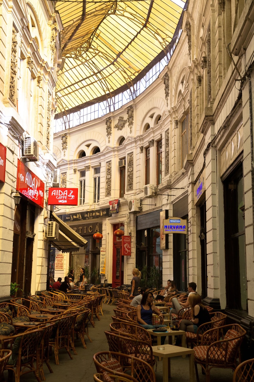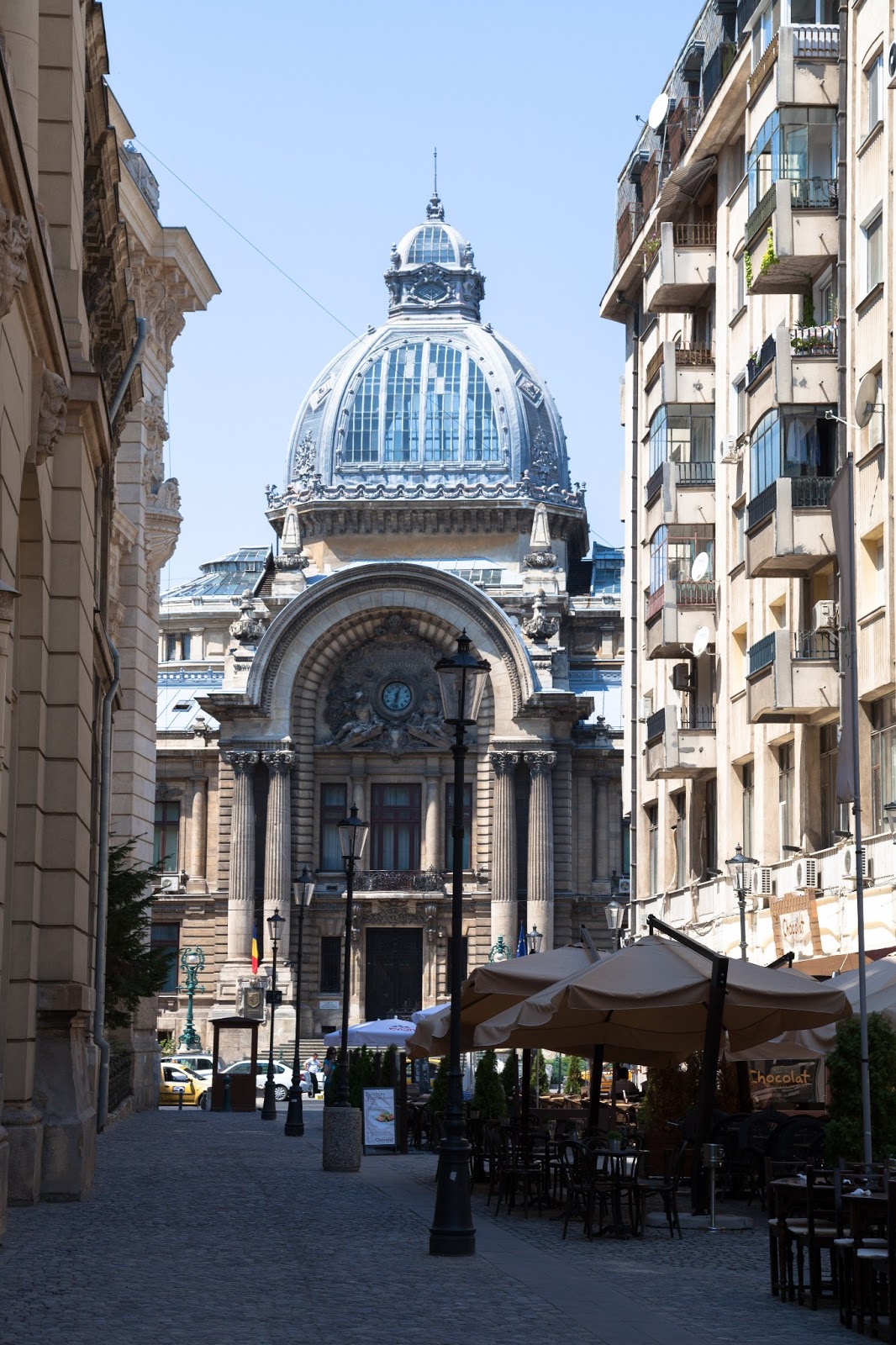 ホテルの近くのStavropoleos通りには小さいルーマニア正教の教会や、古くからある有名なカフェのCaru cu Bereがあり、そこを抜けた先にはガラスの屋根を持つCEC宮殿や、更に右にVictorirei通りを少し行ったらPssajul Villacrosseのアーケードがある。