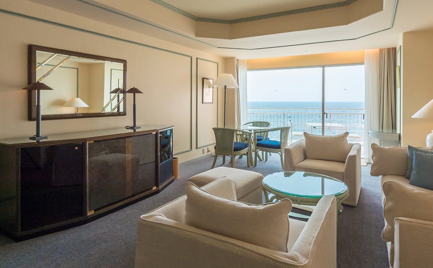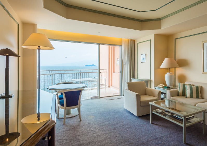 ウィンダムグランド淡島は客室全室スイートルームのリゾートホテルです。ゆっくりとラグジュアリーな滞在時間を堪能いただけるゆとりをもった作りになっています。