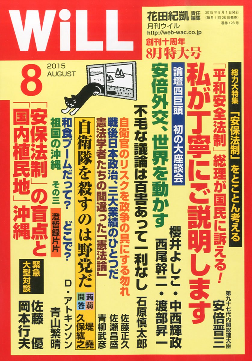 「WiLL」2015年8月号(ワック・マガジンズ) 「安倍総理から『丁寧に説明する』という言葉だけが出ているが、丁寧に説明されたという実感は一度もない」 これは、国会で安保法制が違憲だと証言した憲法学者の小林節氏の言葉だが、各社の世論調査でも圧倒的多数が「政府の説明は不十分」だと回答している。 …