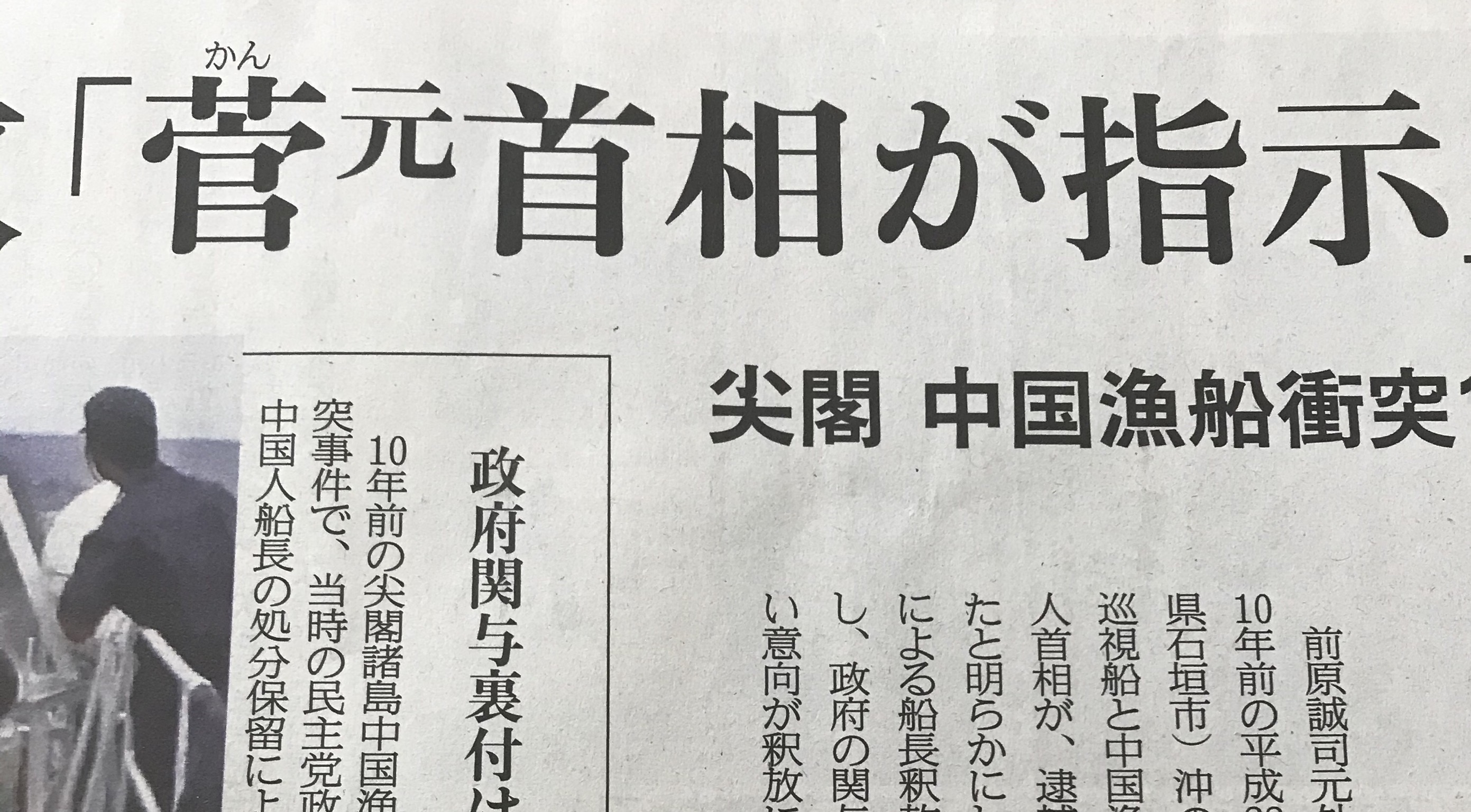 1: ダルナビルエタノール(光) [US] 2020/09/08(火) 08:03:00.26 ID:r/FF+M/O0● BE:201615239-2BP(2000)前原誠司元外相が産経新聞の取材に対し、10年前の平成22年9月7日に尖閣諸島(沖縄県石垣市)沖の領海内で発生した海上保安庁巡視船と中国漁船の衝突事件で、当時の菅(かん)直人首相が、逮捕した中国人船長の釈放を求めたと明らかにした。旧民主党政権は処分保留による船長釈放を「検察独自の判断」と強調し、政府の関与を否定してきたが、菅氏の強い意向が釈放に反映されたとみられる。▽おすすめ