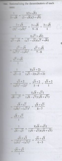 Rationalise the denominator from Q- 1 to Q -11