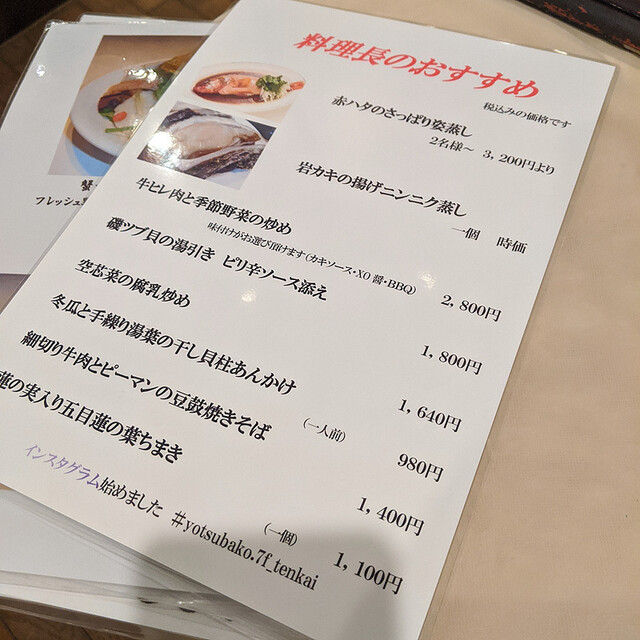 センター北 Yotsubako7F 広東料理 天啓(テンカイ)メニュー