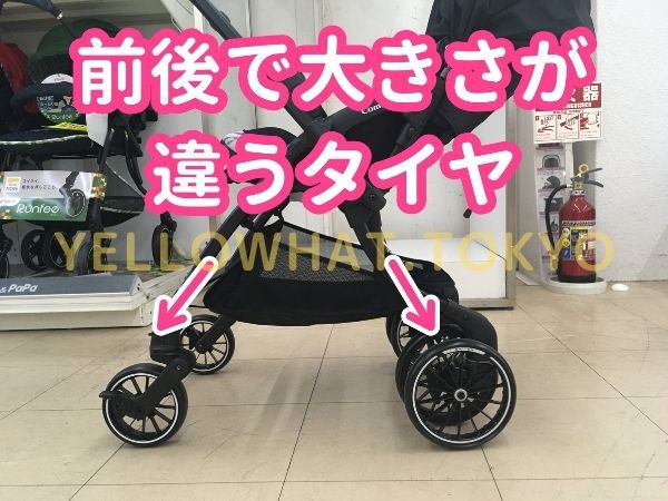 ハンドルを前と後ろで切り替えることができて安定性のある2輪タイヤ、操作しやすい1輪のスマートタイヤにすることができてそこも便利です。