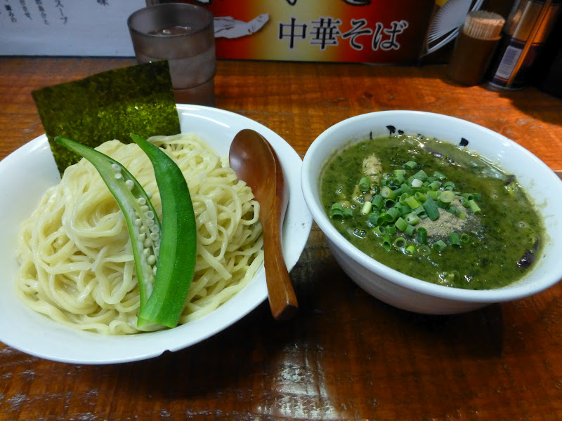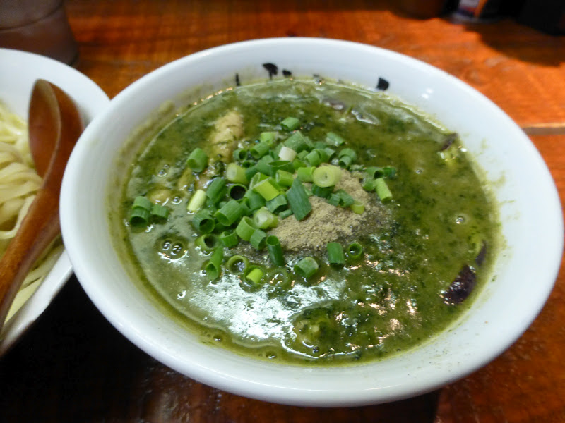 今日は、”限定”の「どろグリーン」という凄まじいネーミングのつけ麺をいただきました。
