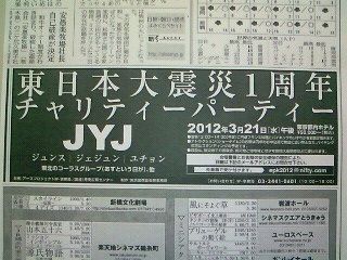 たまたま、目についた2011年12月の「JYJ、東日本大震災1周年・チャリティーパーティー」