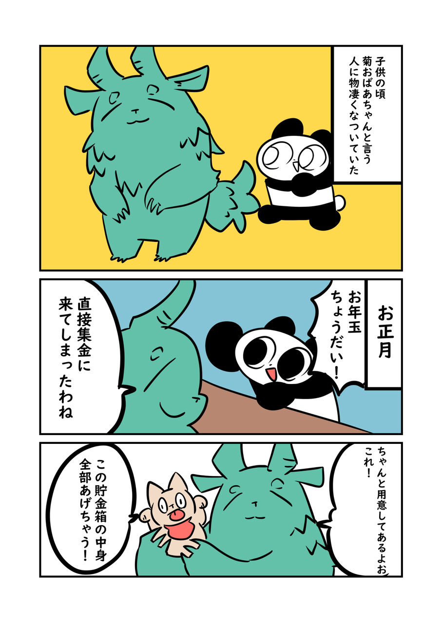2020年10月22日 たくさんのお年玉 こんぬら これうちのカニ↓ またね 「絵日記」カテゴリの最新記事 高校生の頃の悩み事 川遊び 在宅ワークとオフトンと 美しい蝶と勘違い 引っ越したはいいものの… タグ :お菊婆ちゃん絵日記子ぬら次郎 < 前の記事次の記事 > コメント コメント一覧 (2) 1. bloody1031 2020年10月22日 20:51 またぬらさんはババアたぶらかして… って思ったらこのおばあちゃんもしたたかだったwww 8 2. yuuhitsu 2020年10月22日 23:33 菊おばあちゃんのキャラデザインとても好きです 角が生えててモフモフ緑、そして優しそうなお顔 9 このブログにコメントするにはログインが必要です。