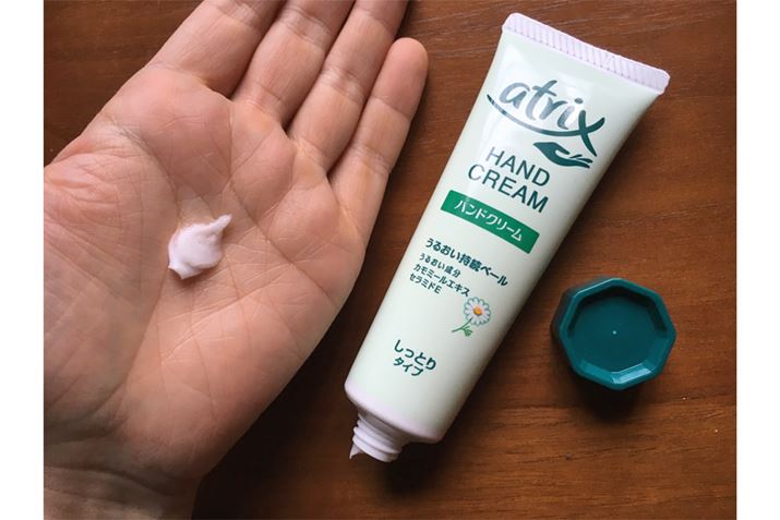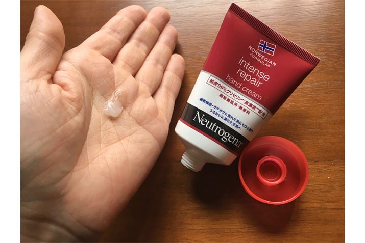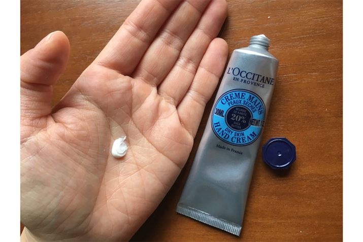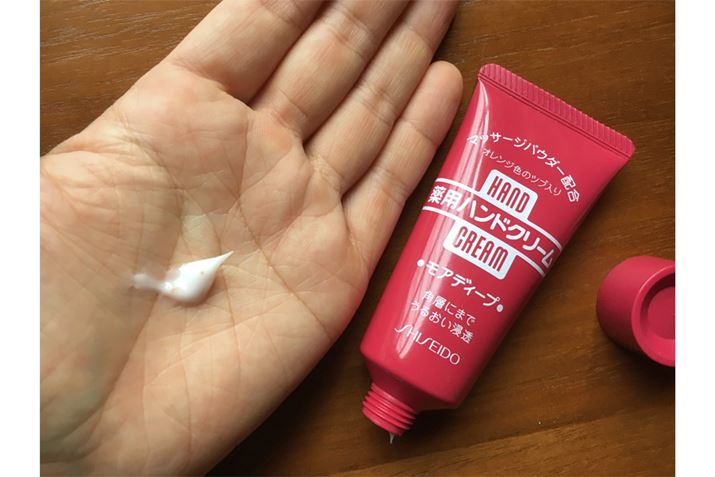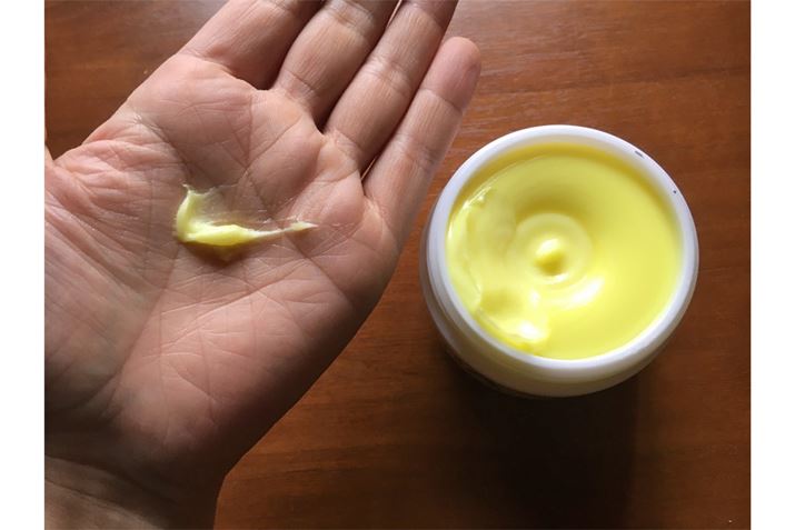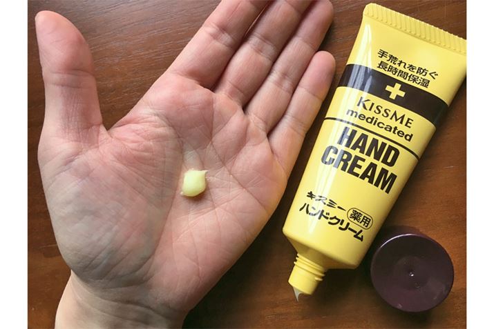 dl-カンフルという炎症を抑える成分によるスッとした香りが特徴。使った途端に人に気付かれるであろう、強い香りではあるので、お家での使用がよさそう。クリーム自体の特徴的な黄色は、ビタミンB2によるもの。あまり塗り直さなくてもしっとりが持続し、水にも強い印象でした。主婦のお供というイメージどおり、水仕事をよくする人には頼れる味方!