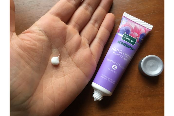 香りのいいハンドクリームでコスパ的にもかなりGOODなのがクナイプのシリーズ。今回ペパーミントがチョイスしたのは「しっとり」タイプの「スイートバイオレット&マグノリア」の香り。べたつきはまったくなし! エッセンシャルオイルがもたらす自然な香りと、植物オイルの保湿・美容効果で「しっとり」タイプではあってもベタベタ感はまったくないので、べたつきが苦手な方にいいかもしれません。伸びもかなりよく、手に広げた瞬間に甘いお花の香りで満たされます。塗り直しはかなりの頻度で必要だったため、あまり保湿の持続には期待できないかもしれません。購入した20g入りのものはかなり小さめのサイズでポケットにも入るぐらいのため、持ち歩きにも便利!