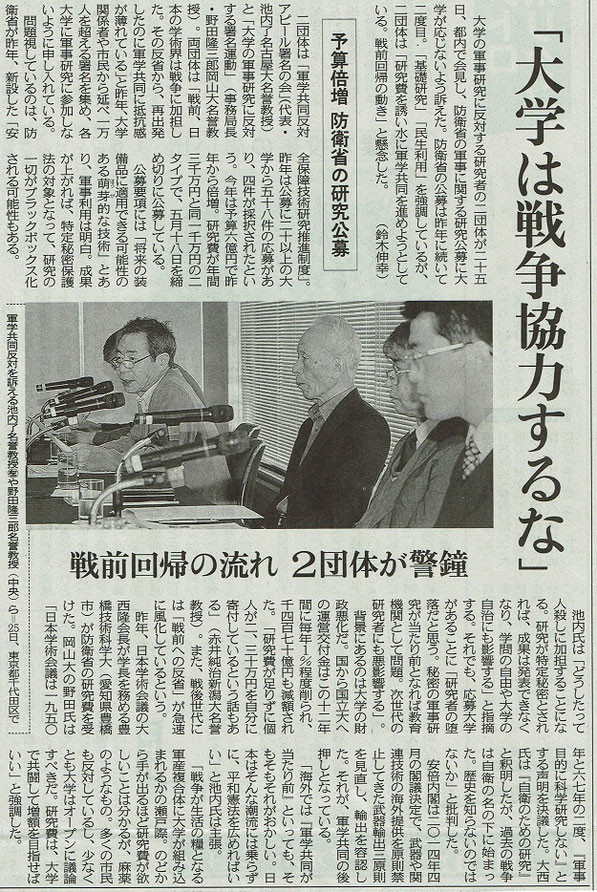 大学の軍事研究に反対する会