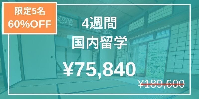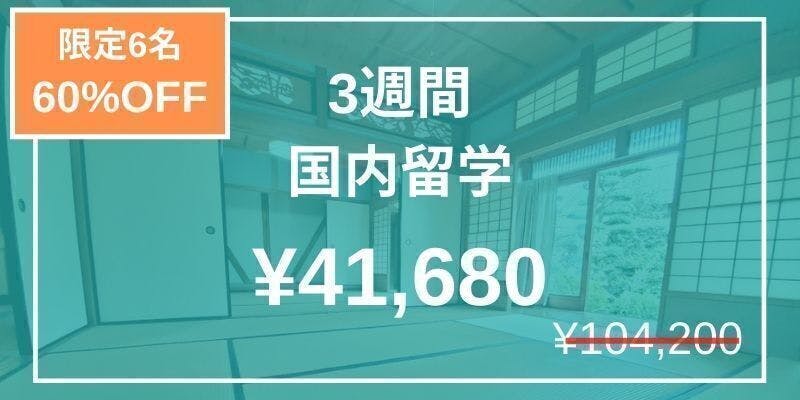 合計、60%オフでご提供させて頂きます。今後、二度とない費用で国内留学が可能です。