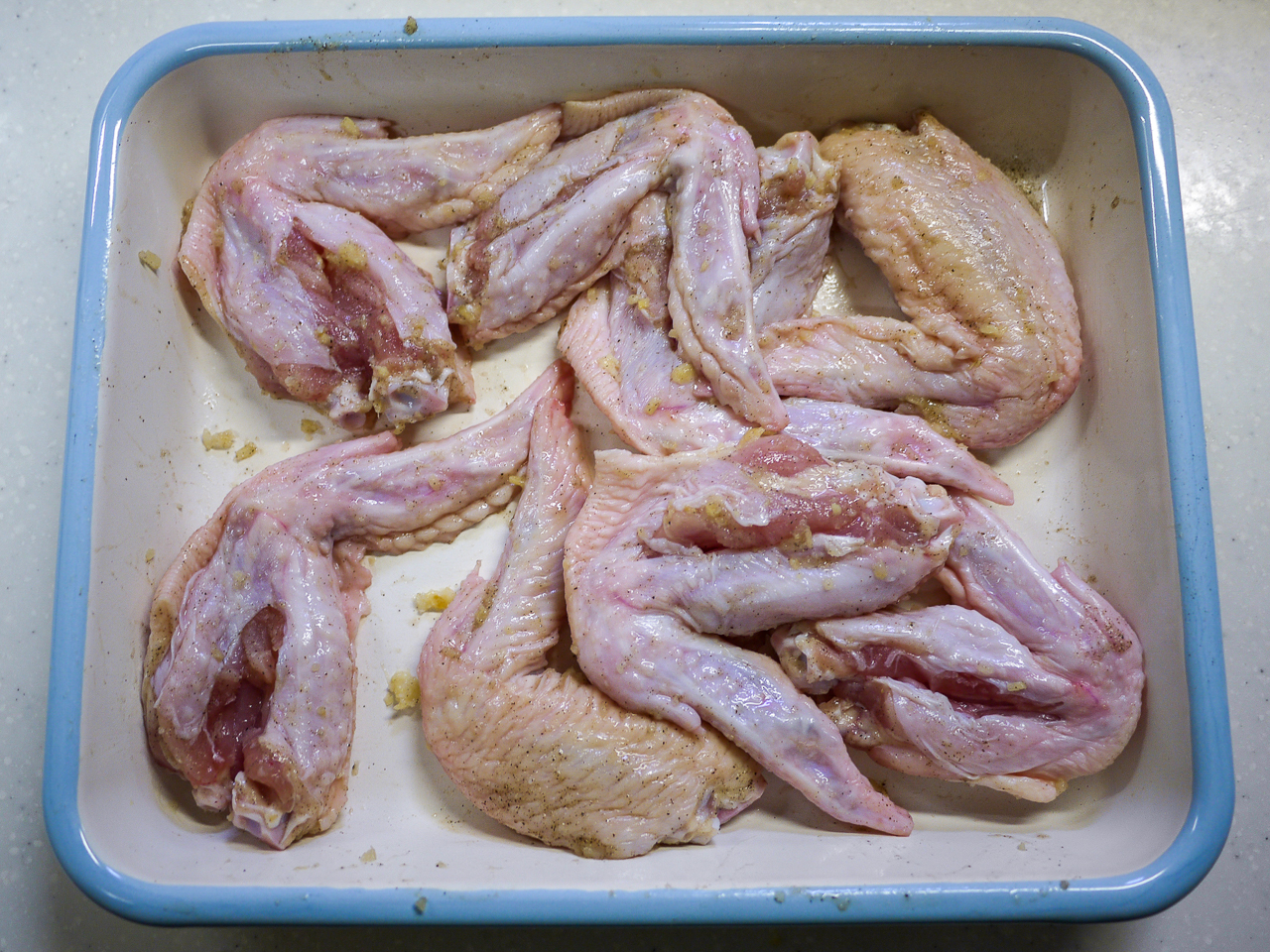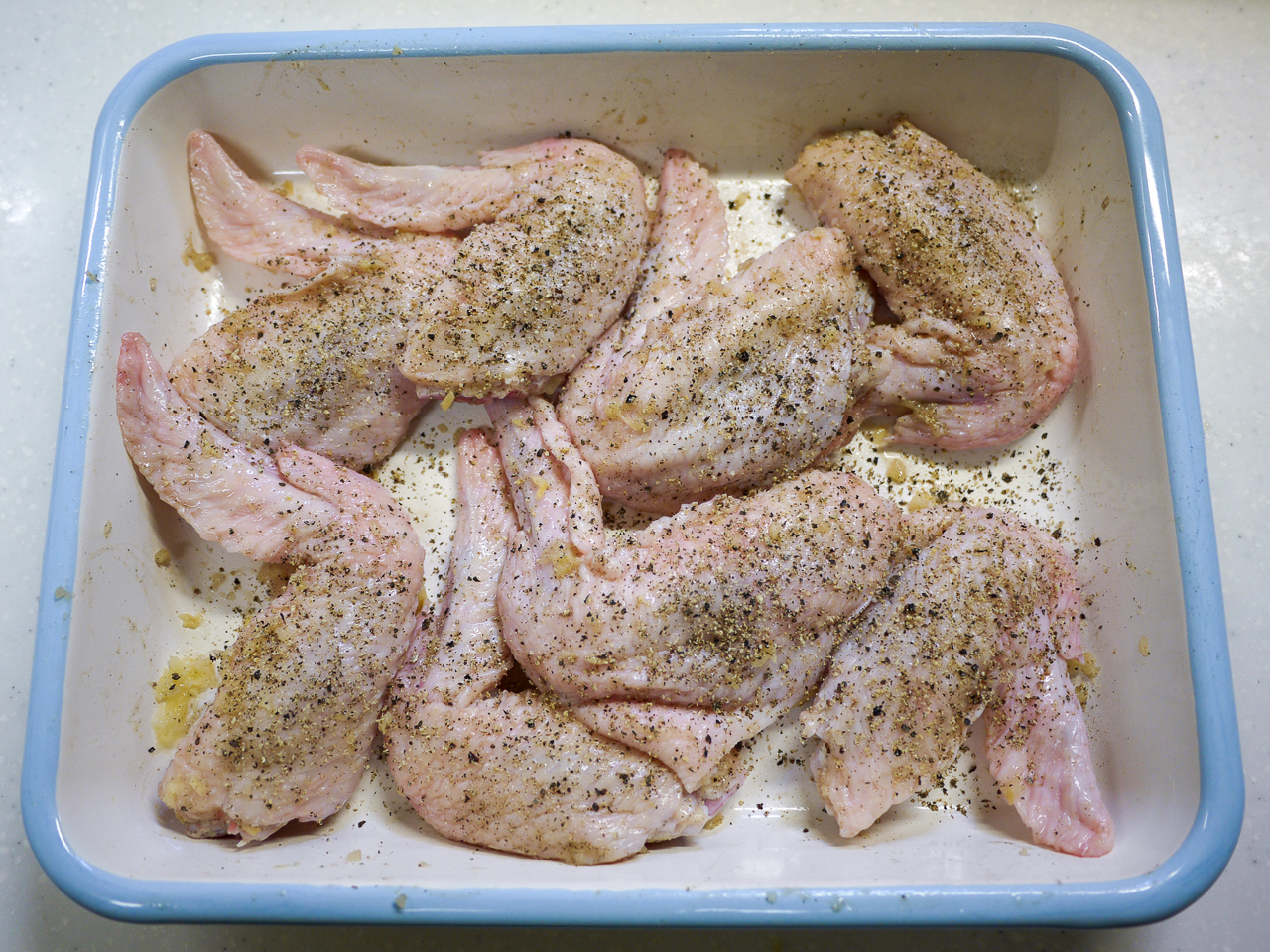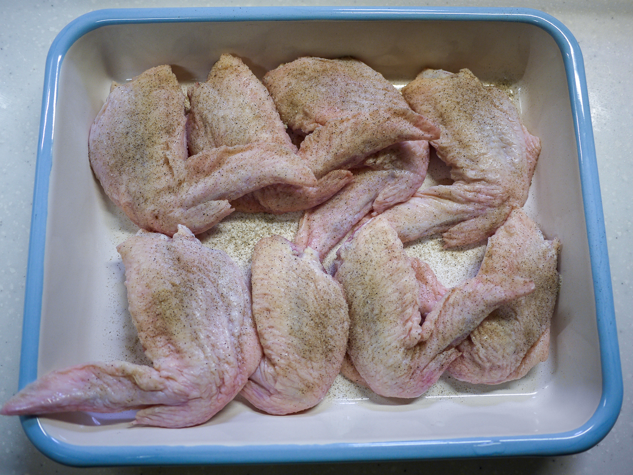 手羽先に少しだけ切り込みを入れて塩、胡椒&黒胡椒