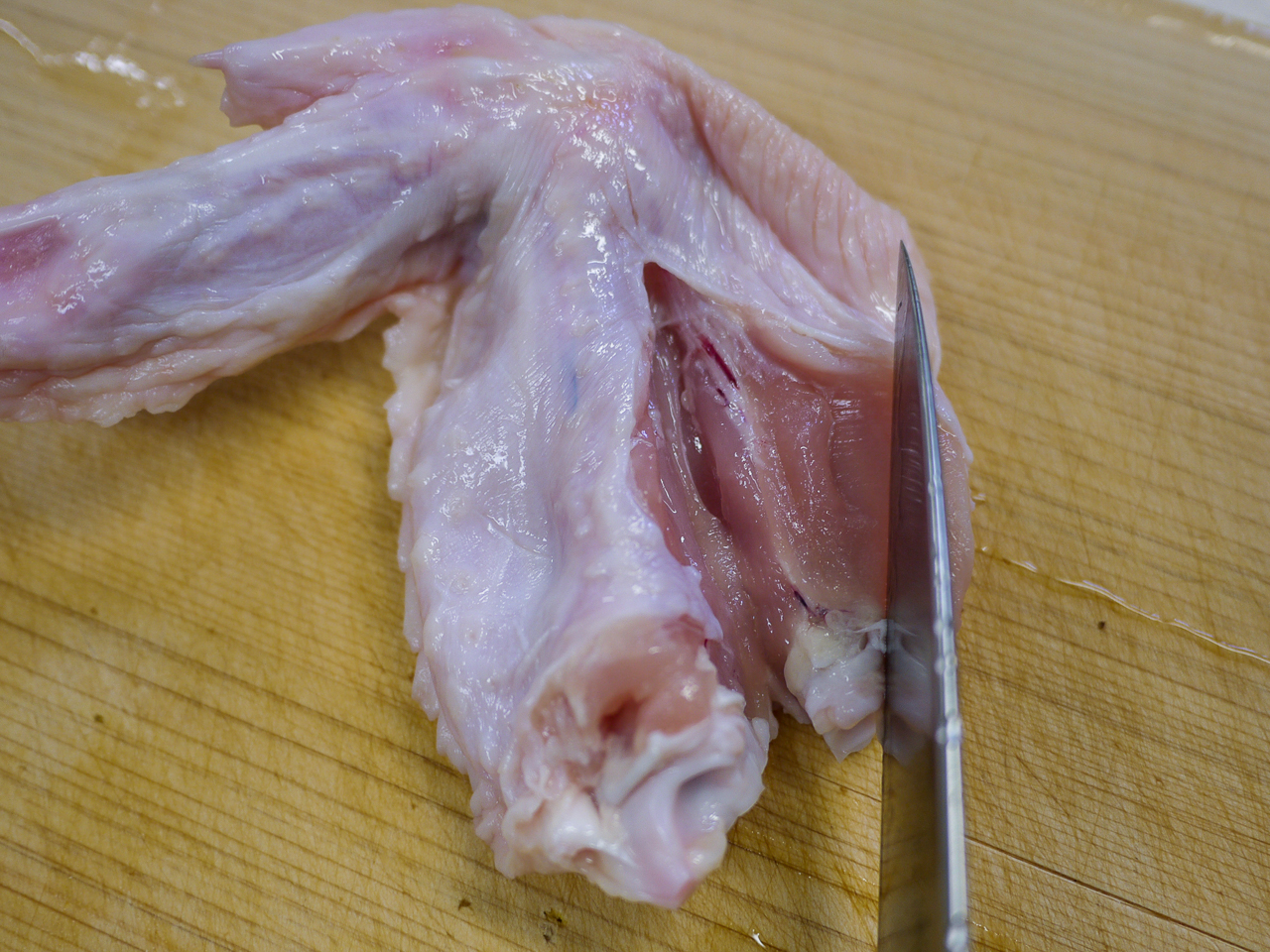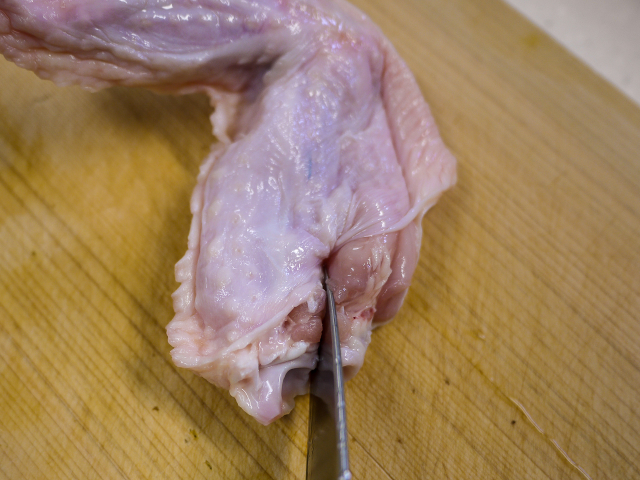 ① 手羽先は骨と骨の間に包丁で切り込みを入れ身の部分を