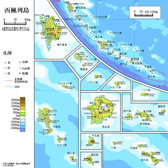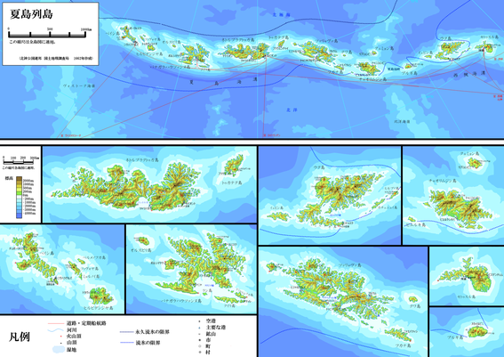 西楓列島に北西に連なる夏島列島の地図です。公国では北嶼公国に相当します。