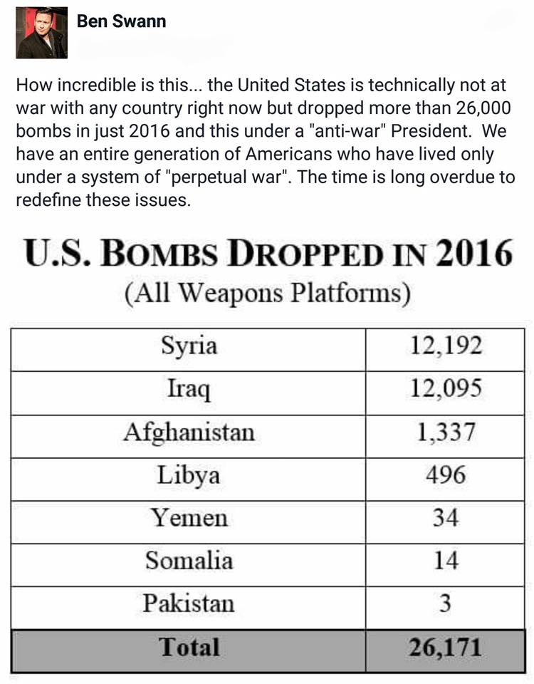 他国を爆撃した回数は、2016年の一年だけでも26171回。