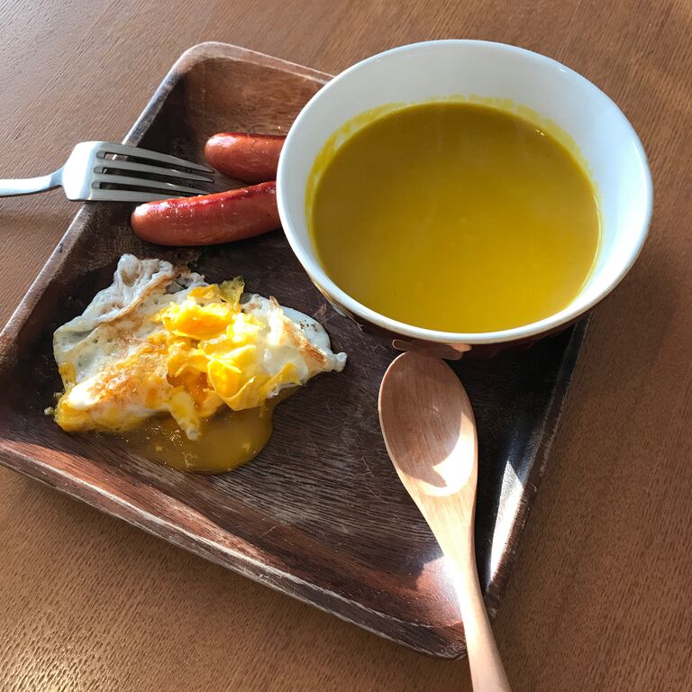 今日は 昨日作ったかぼちゃのポタージュがあったので簡単朝ごはん
