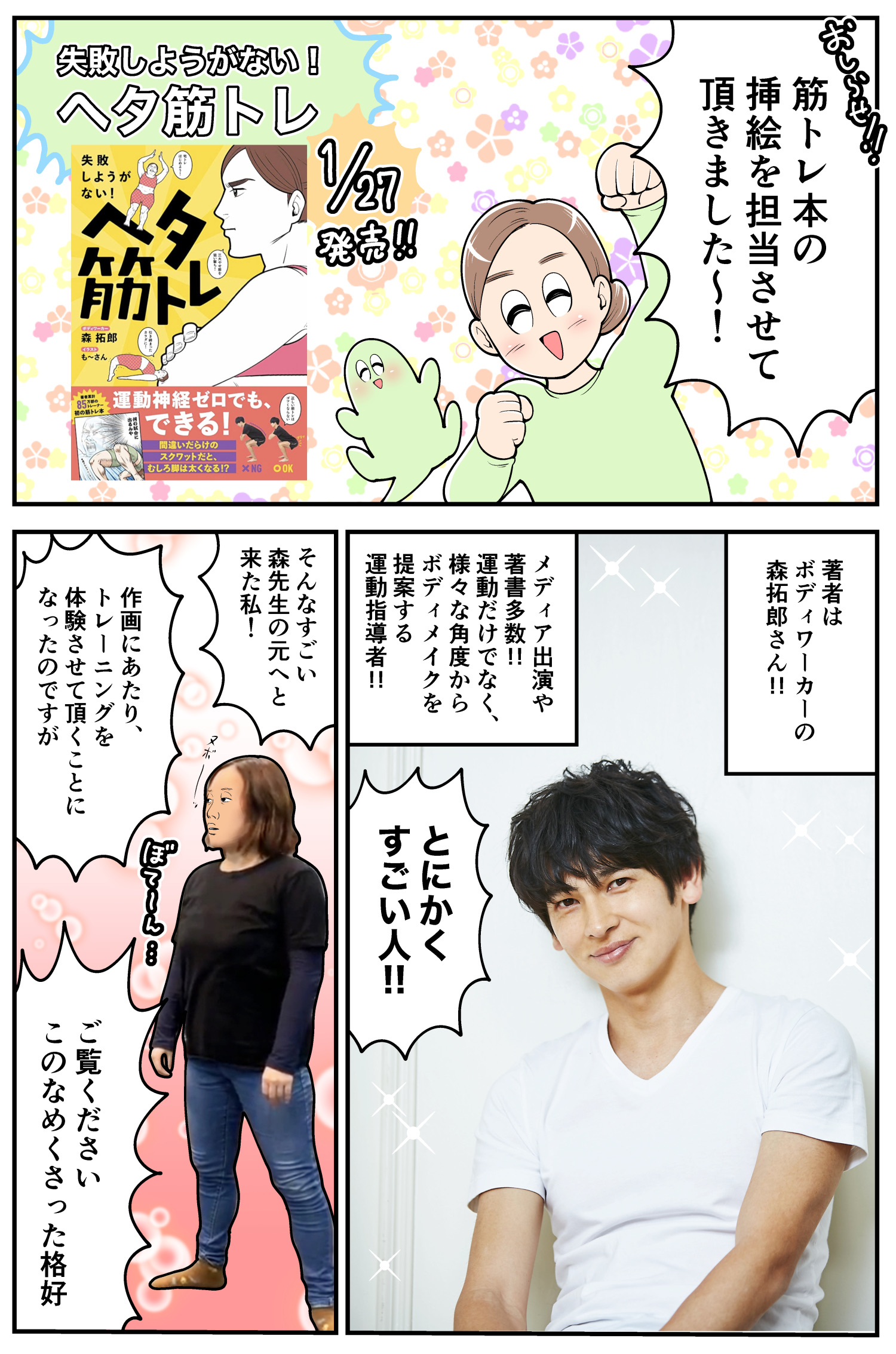 筋トレ苦手な人でも頑張れる実用的なトレーニングと共に、漫画としても楽しめる一冊になっているので、是非お手に取って頂ければ幸いです。