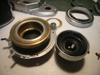 鏡胴も前面の銘環を外すとシャッターがすぐむき出しになります。
