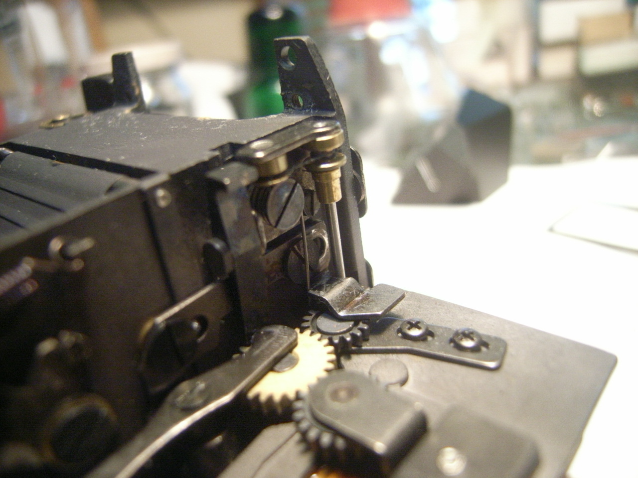 ペトリは巻き戻し側に置き、場所を開けるためギヤを使い、巻き戻し