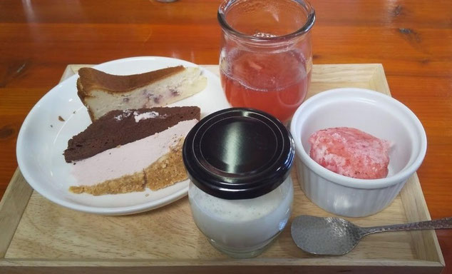 チーズケーキとあまおうのジェラートです。