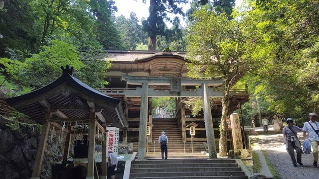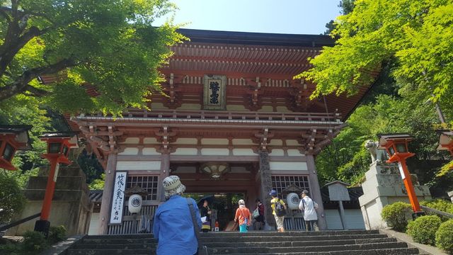 中門です。この辺りまで降りてくると、参道も若葉に覆われて木漏れ日と伝う風が心地よく感じます。