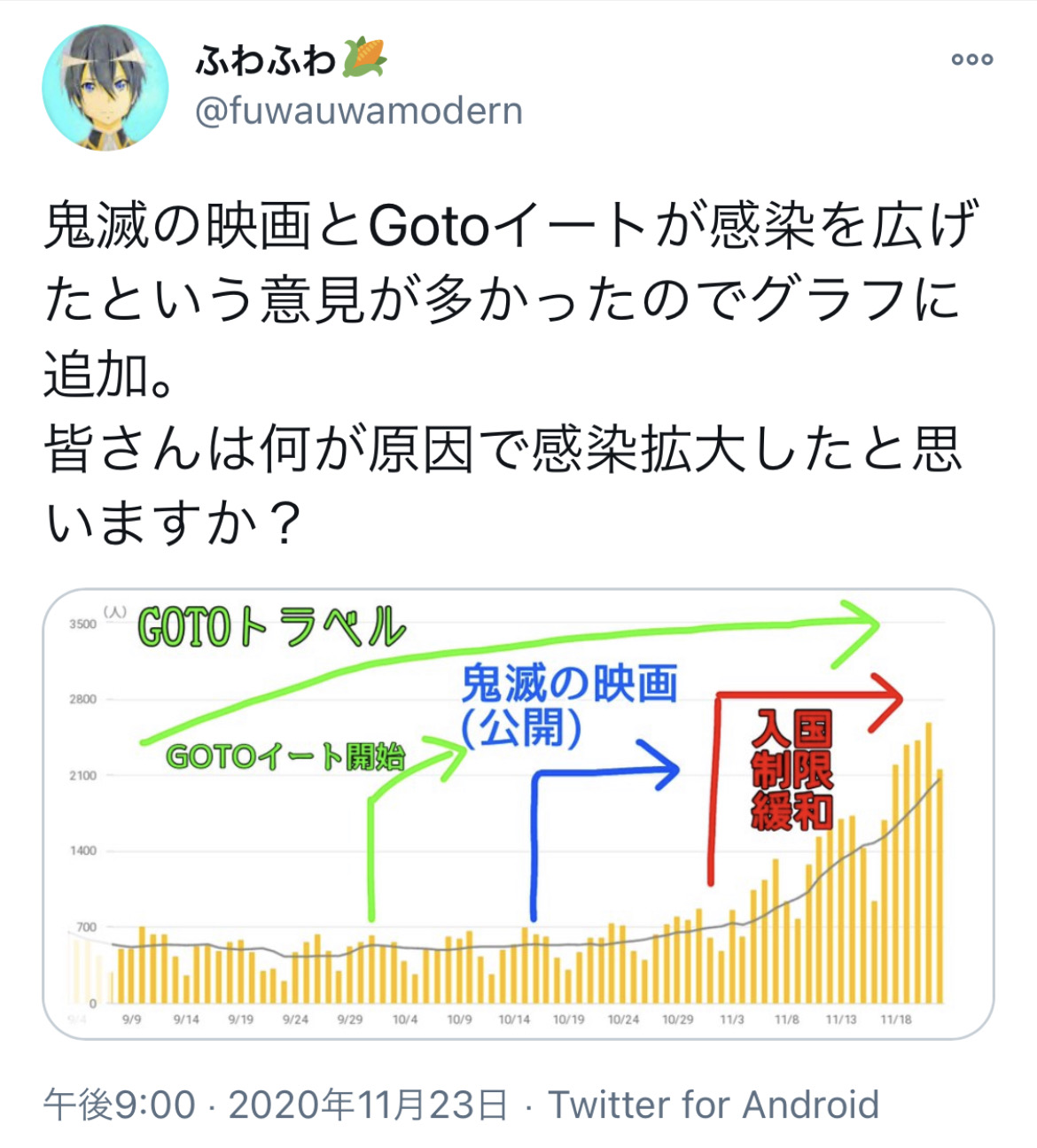 入国緩和が原因=人の移動が原因=つまりGOTOも感染拡大の原因