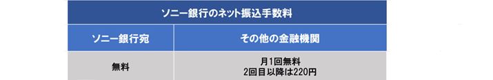 ソニー銀行宛であれば振込手数料は無料です。他行宛の場合は月1回まで無料で、2回目以降は220円かかります(「Sony Bank WALLET」 を持っている人は2回無料で3回目以降220円)。