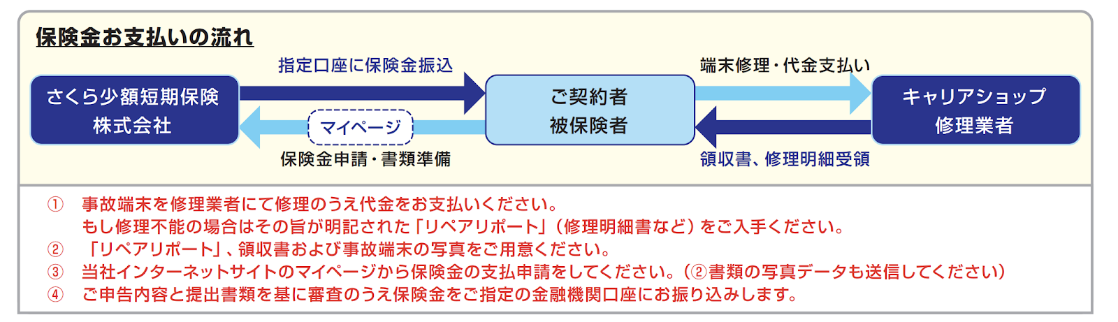 モバイル保険は引受をした端末の修理費用を負担する責務があり、また加入者も修理費用が戻ってくるという安心感の元で代金を先出しするケースがほとんどだと思います。