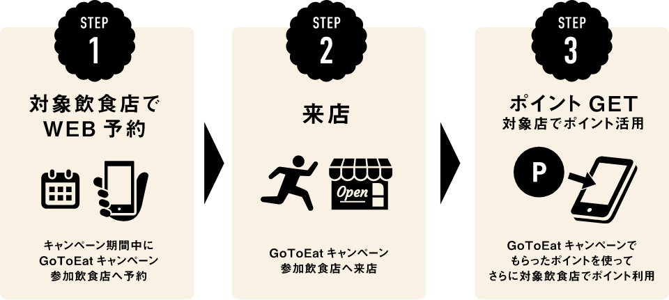 - 農林水産省の判断により、早期にキャンペーンが終了、中止となった場合、予約来店があったとしてもポイント付与されない場合があります。