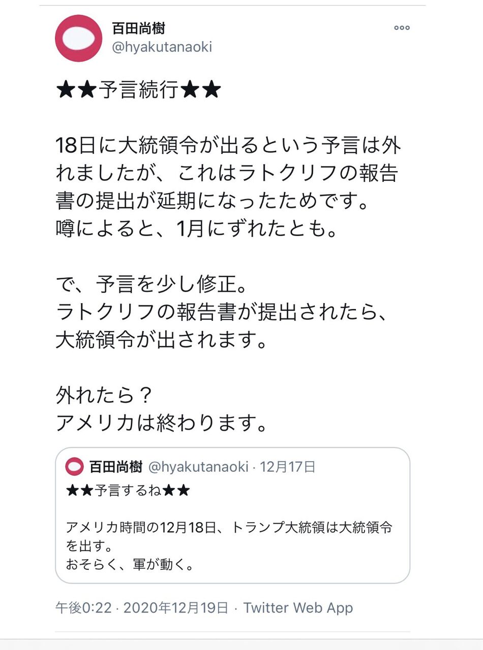 バイデン当選の時点で終わってる定期