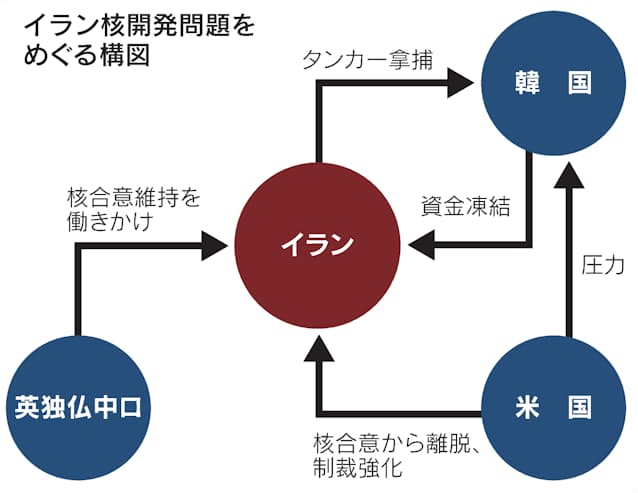 イランの強硬姿勢の背景には、一気に経済協力のレベルを引き下げた韓国の態度への不満があるとみられる。欧州や日本など、米国の同盟国でありながらイランとも一定の関係を持つ国がイラン離れを加速する事態についても警戒しているもようだ。