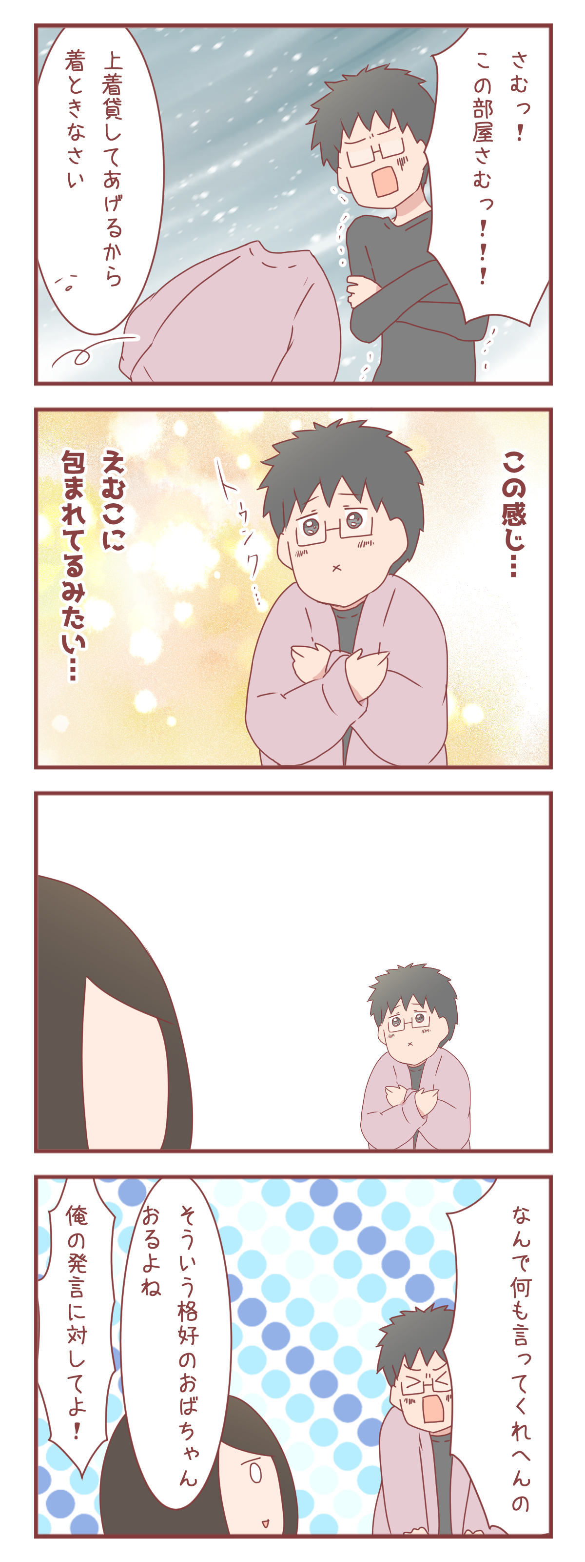 それにしても、相変わらず寒い日でも室内で下着姿で過ごす夫よ。